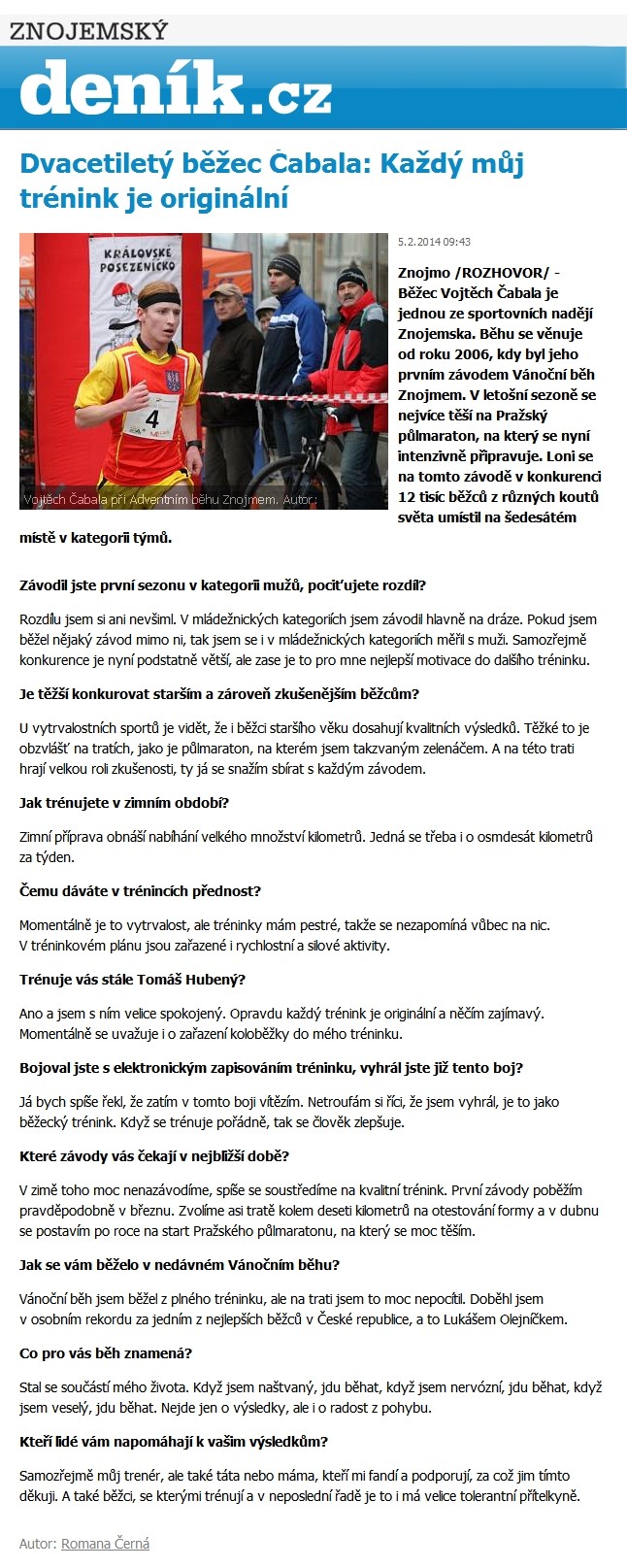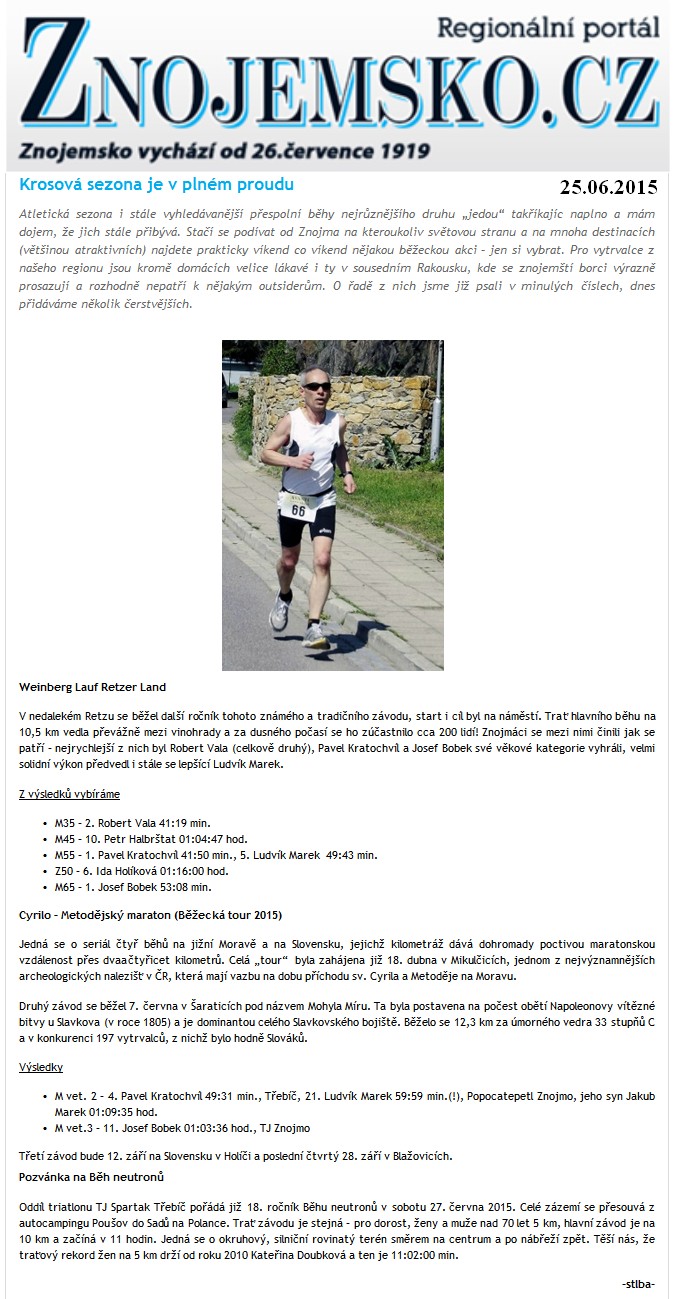 2013-03-13 Znojemské listy - V Mistelbachu nám nestačili, usmívá se běžec Čabala