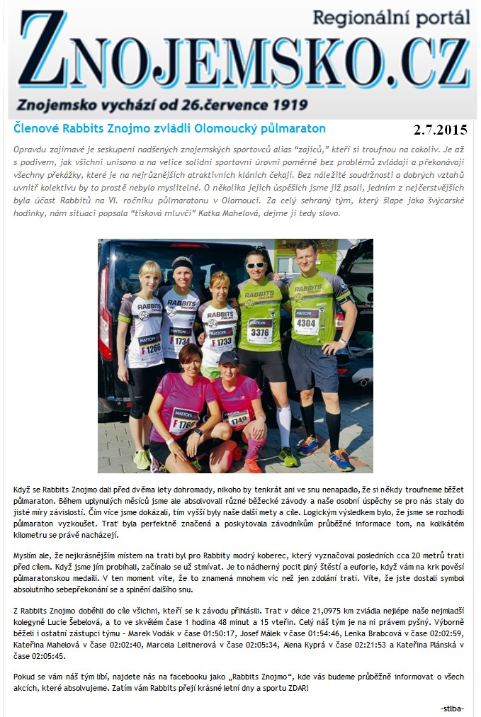2015-07-02 Členové Rabbits Znojmo zvládli Olomoucký půlmaraton